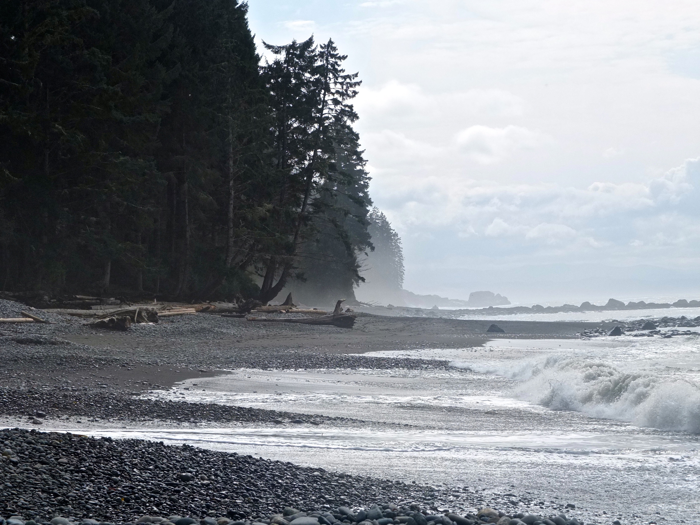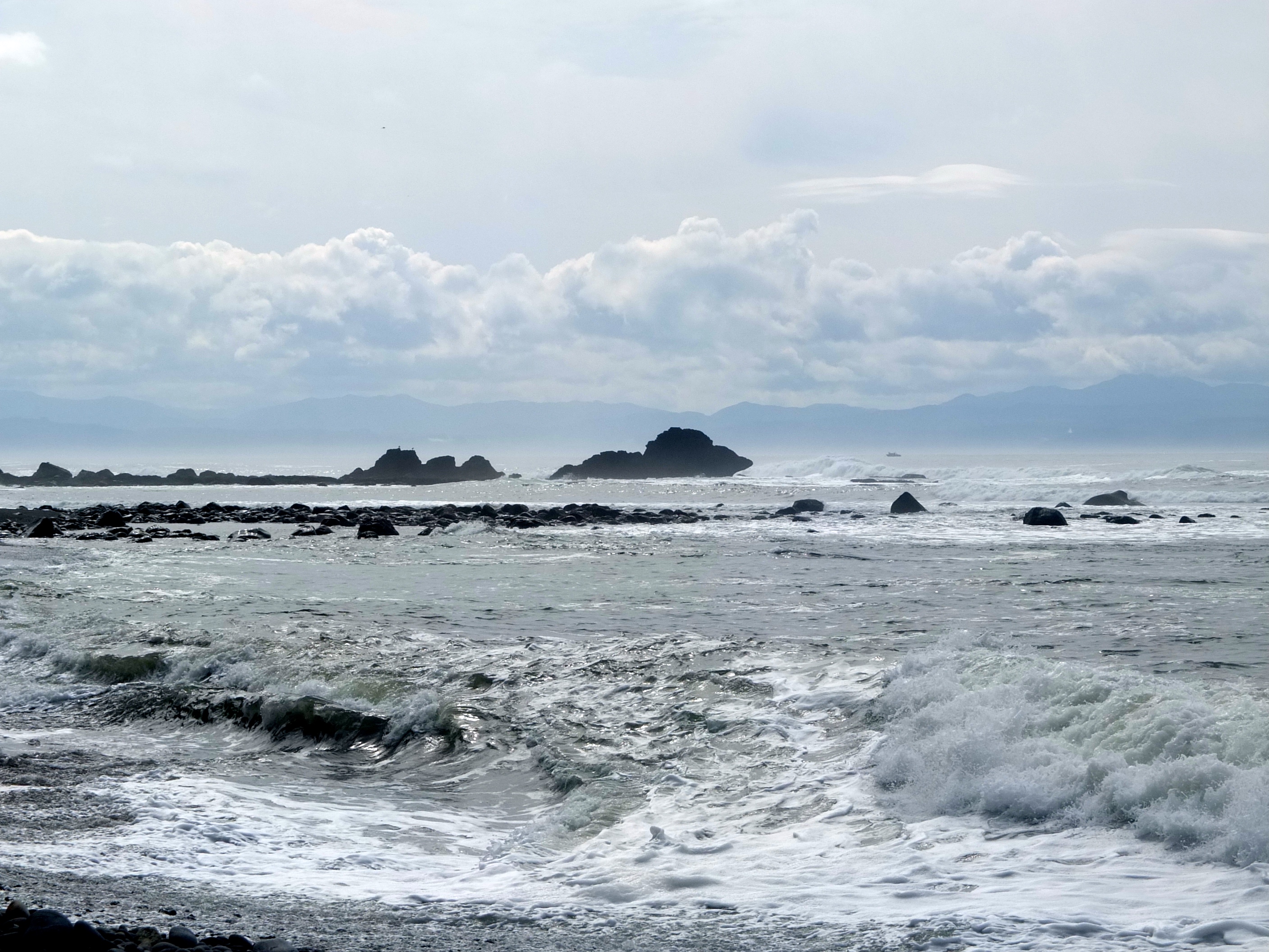 The weather was on my side again and I climbed my way out of Port Renfrew, rolling up and down all the way to French Beach. The road was forested most of the way, with a few roadside clearcuts offering views to the ocean. Around 17km from Port Renfrew I took a steep side road down to Sombrio beach, recommended to me by a friend who used to surf there. I wasn’t a surfer myself, but I knew that more beautiful scenery awaited.