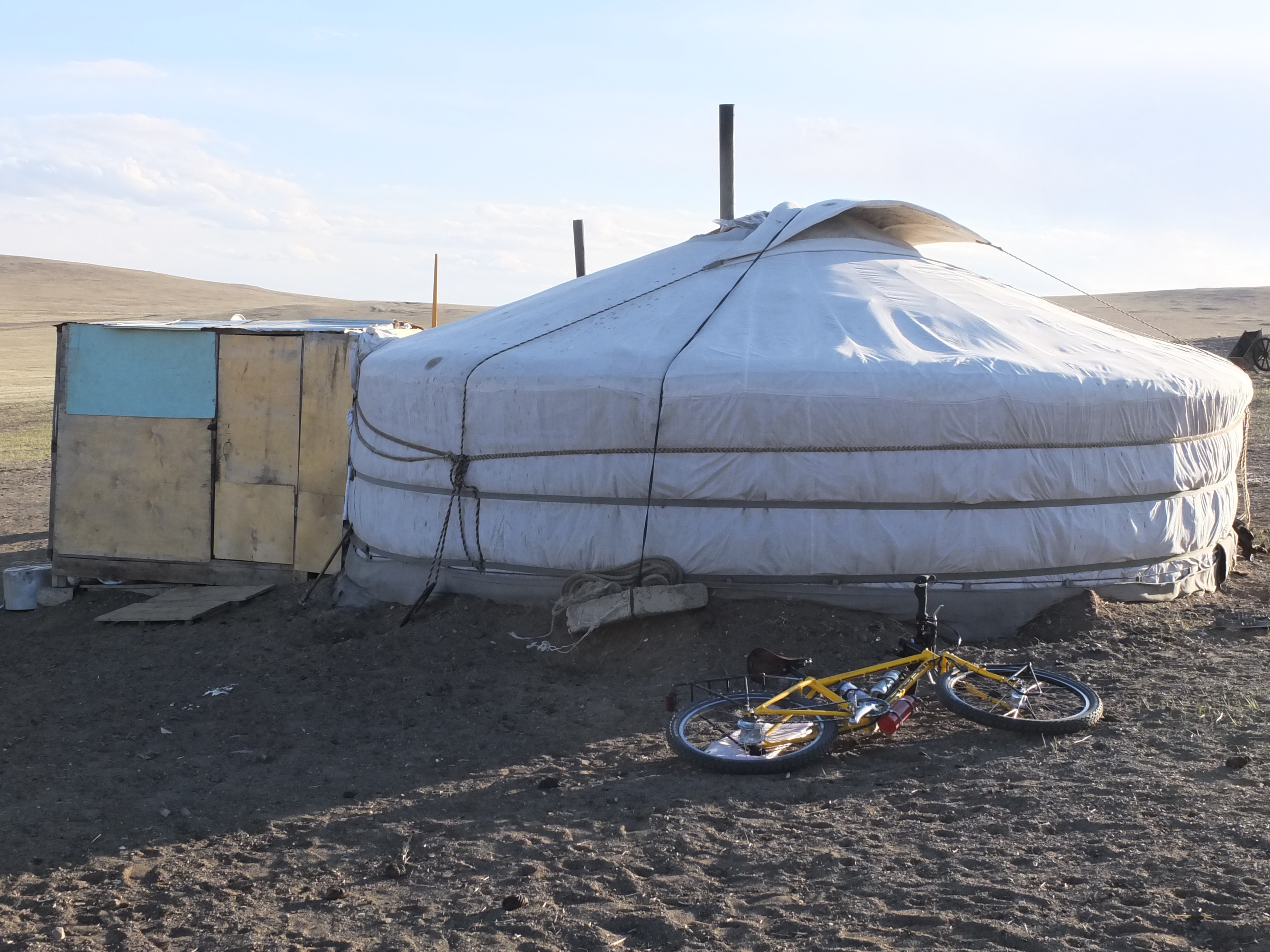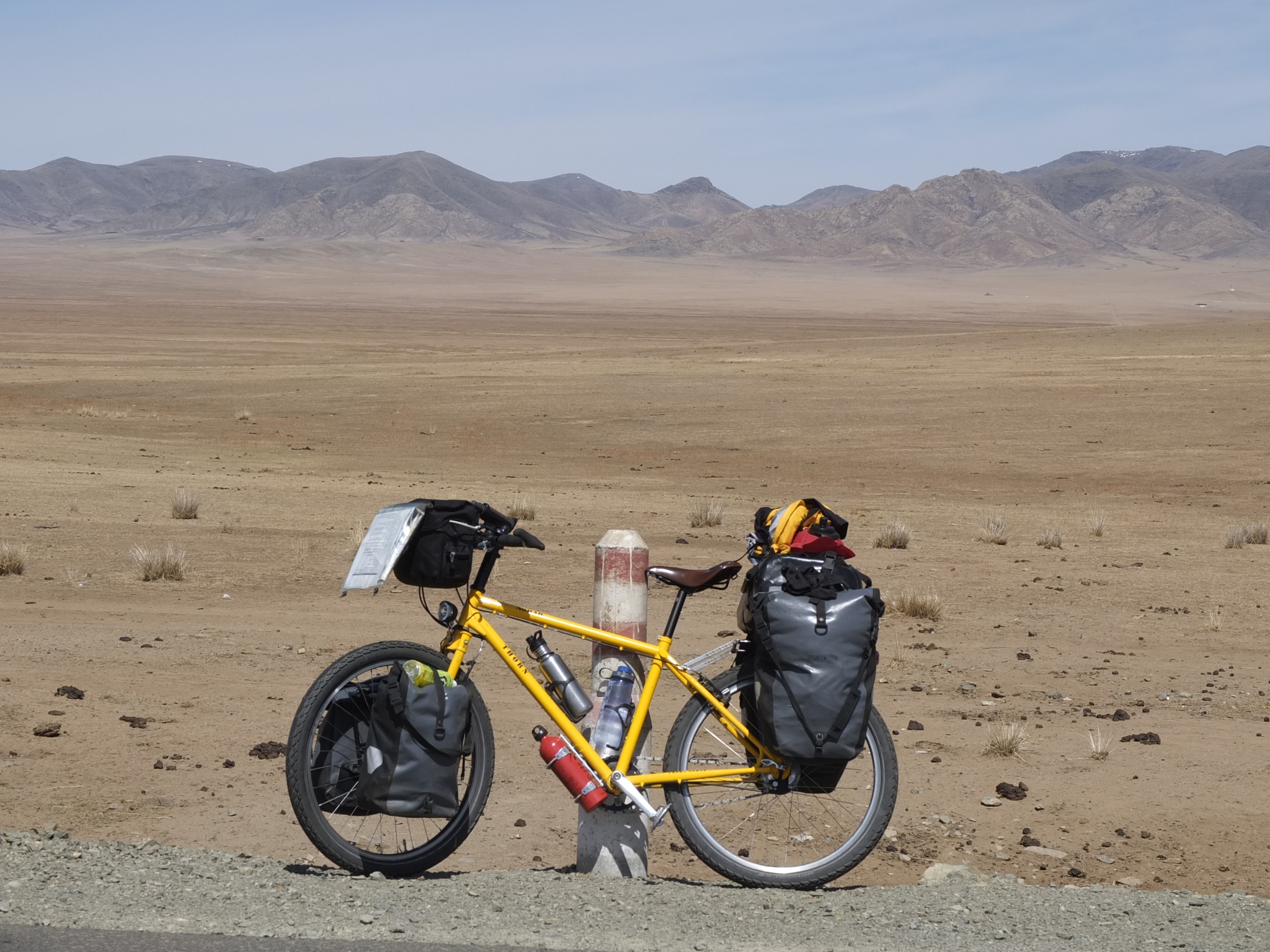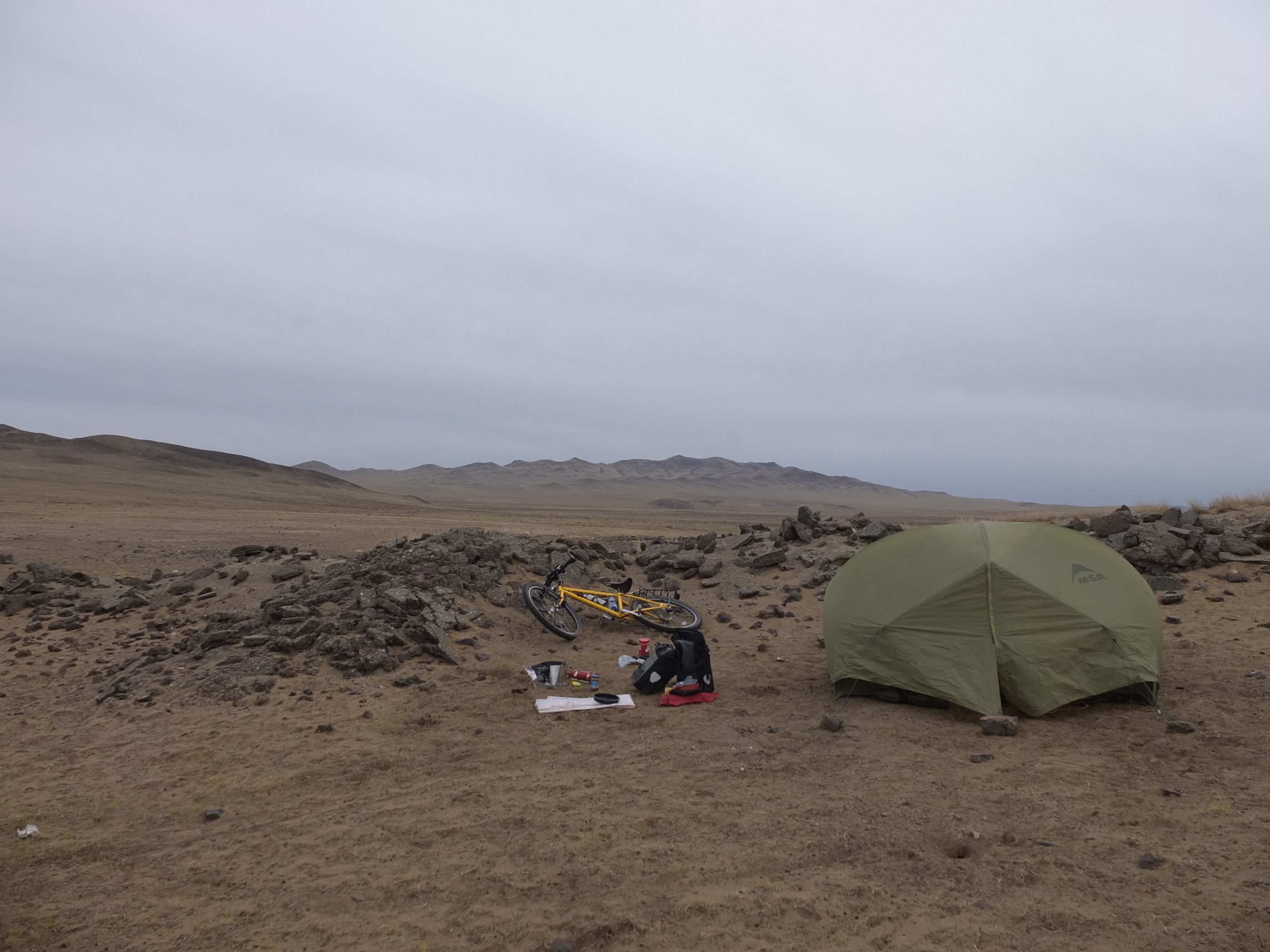 As the road slowly morphed from smooth dirt to rocks to sand, the cycling slowed down and became more strenuous. Just outside of Jargalant, I came across a hill so steep and sandy that pushing up alone wasn’t possible. Lucky for me, another fellow on a motorbike saw me struggling and came to help. Without him, I would have had to unload all of my gear and ferry it to the top.
