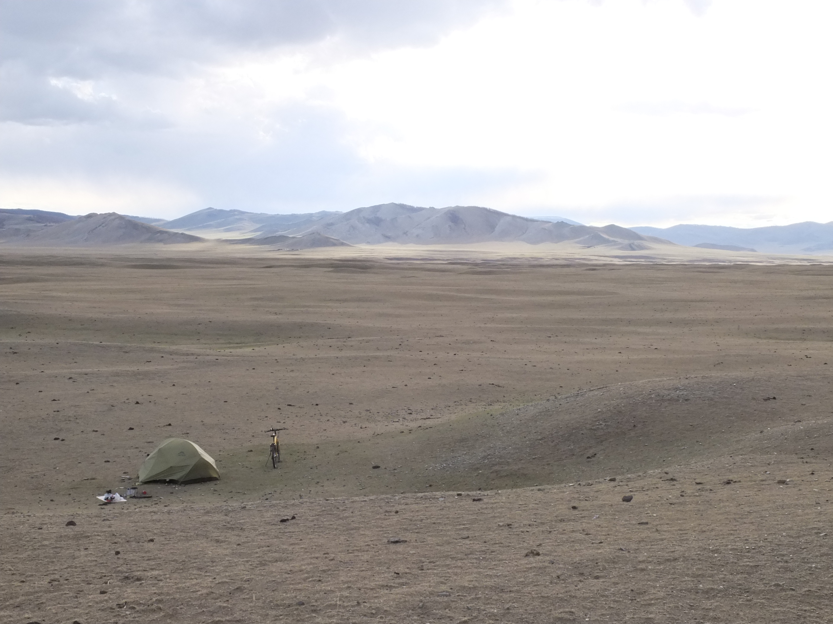 As the road slowly morphed from smooth dirt to rocks to sand, the cycling slowed down and became more strenuous. Just outside of Jargalant, I came across a hill so steep and sandy that pushing up alone wasn’t possible. Lucky for me, another fellow on a motorbike saw me struggling and came to help. Without him, I would have had to unload all of my gear and ferry it to the top.