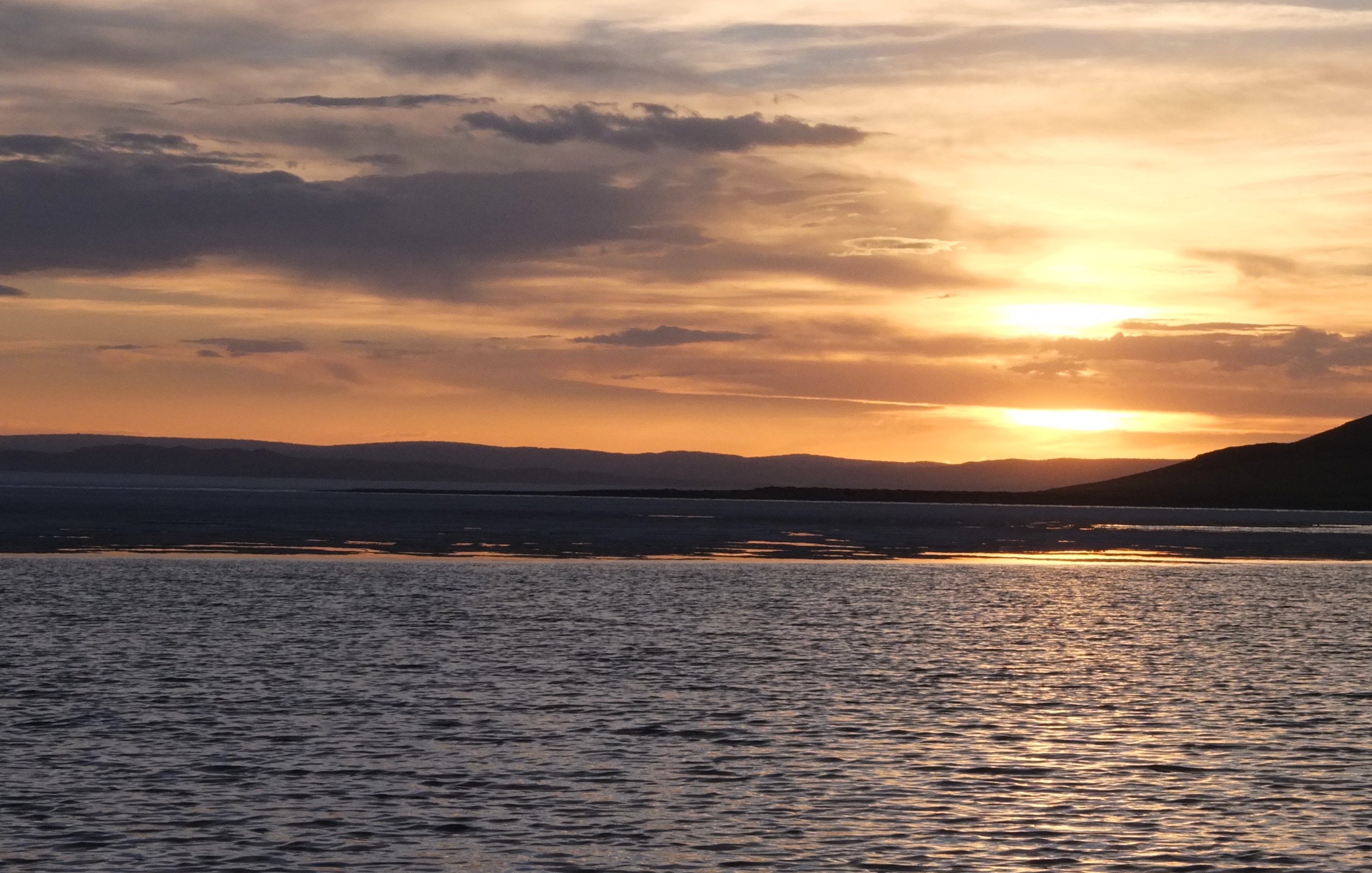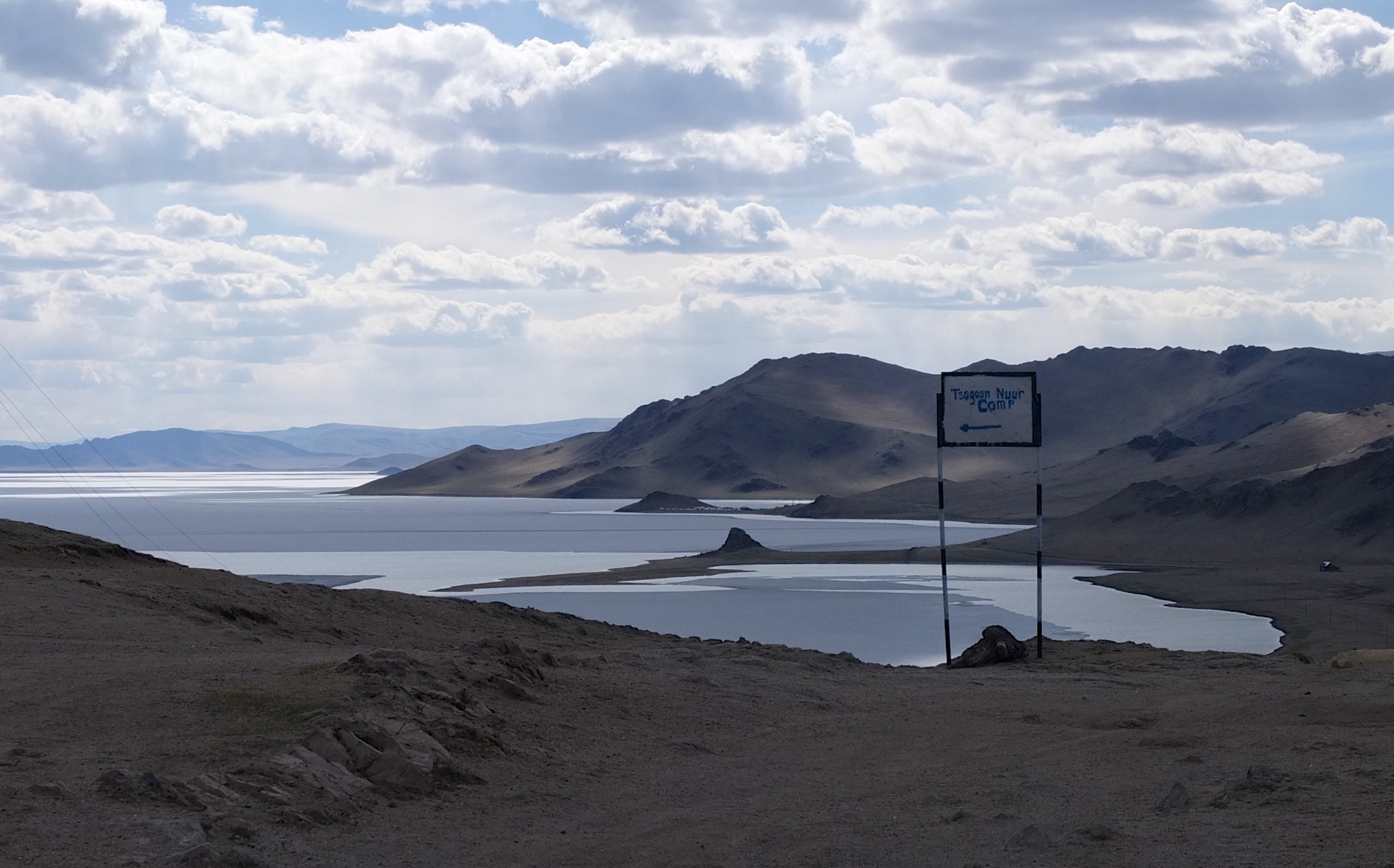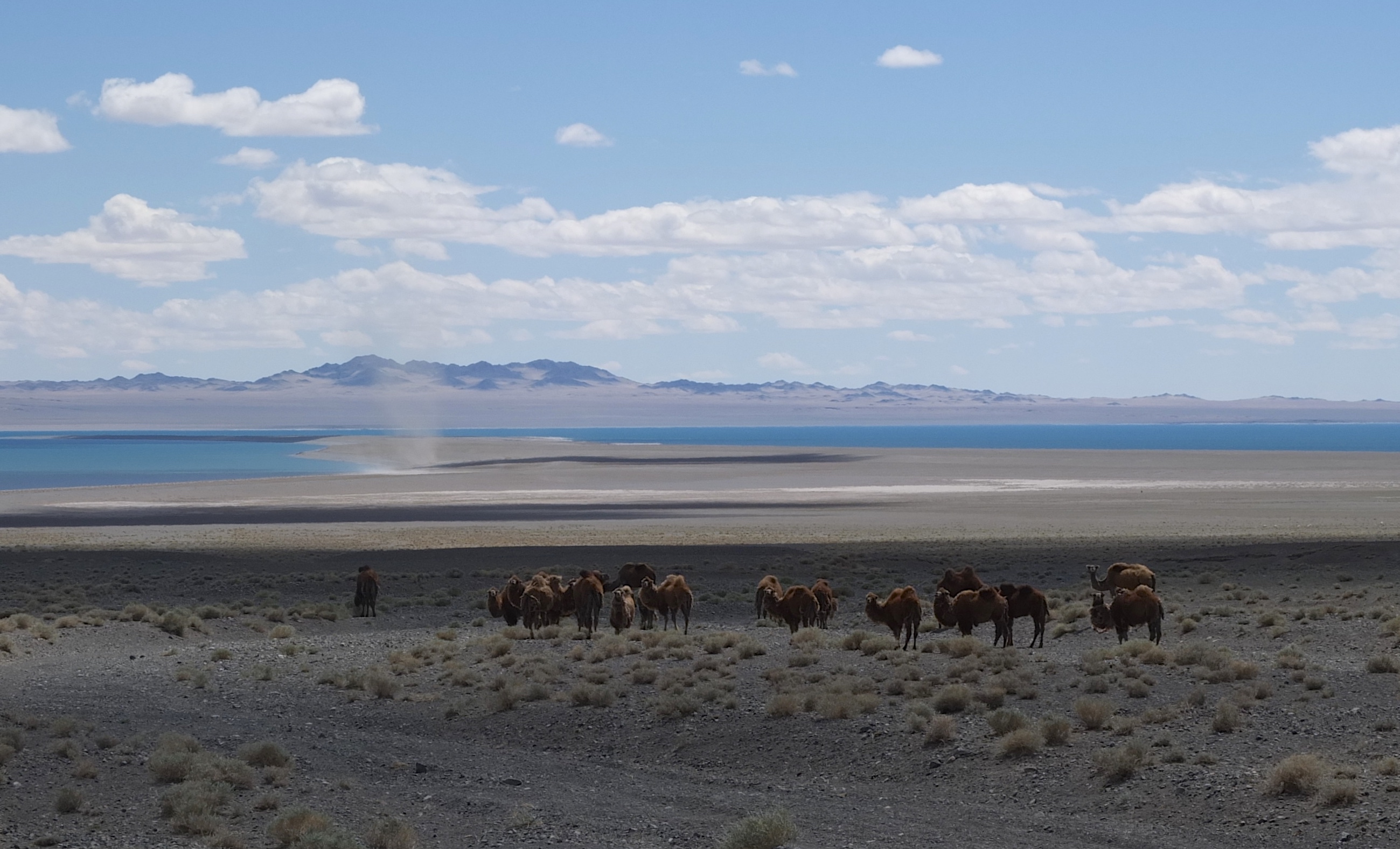 Then, about 25km from Khyargas Nuur – paved road! A unexpected surprise. It is a shame I couldn’t enjoy it as the wind once again fought against me the entire 60km along the salt lake. I would rather struggle through sand than struggle to go downhill on a pristine paved road. Instead of wallowing away in self pity, I did my best to enjoy the ride along the piercing blue lake. I passed groups of camels close to its shore and further down the road towards Ulaangom.