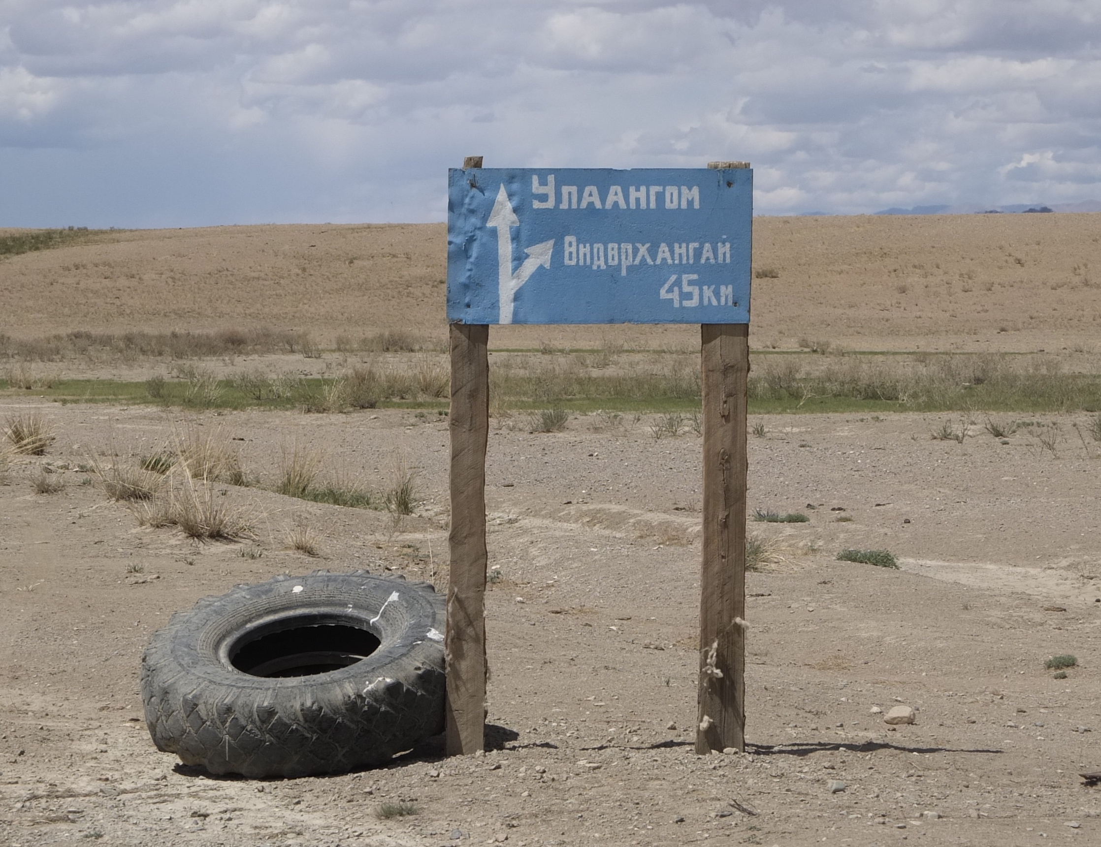 The ride across the desert continued and when I reached Tudevtey, I was glad to have a GPS. It was a maze of tracks leading out of the village, and finding the right one wasn’t exactly obvious. Local knowledge is of course just as good as any GPS, but it isn’t always easy to understand the directions given. If Mongolian “roads” were to be viewed on a very small scale this is what an intersection would look like: