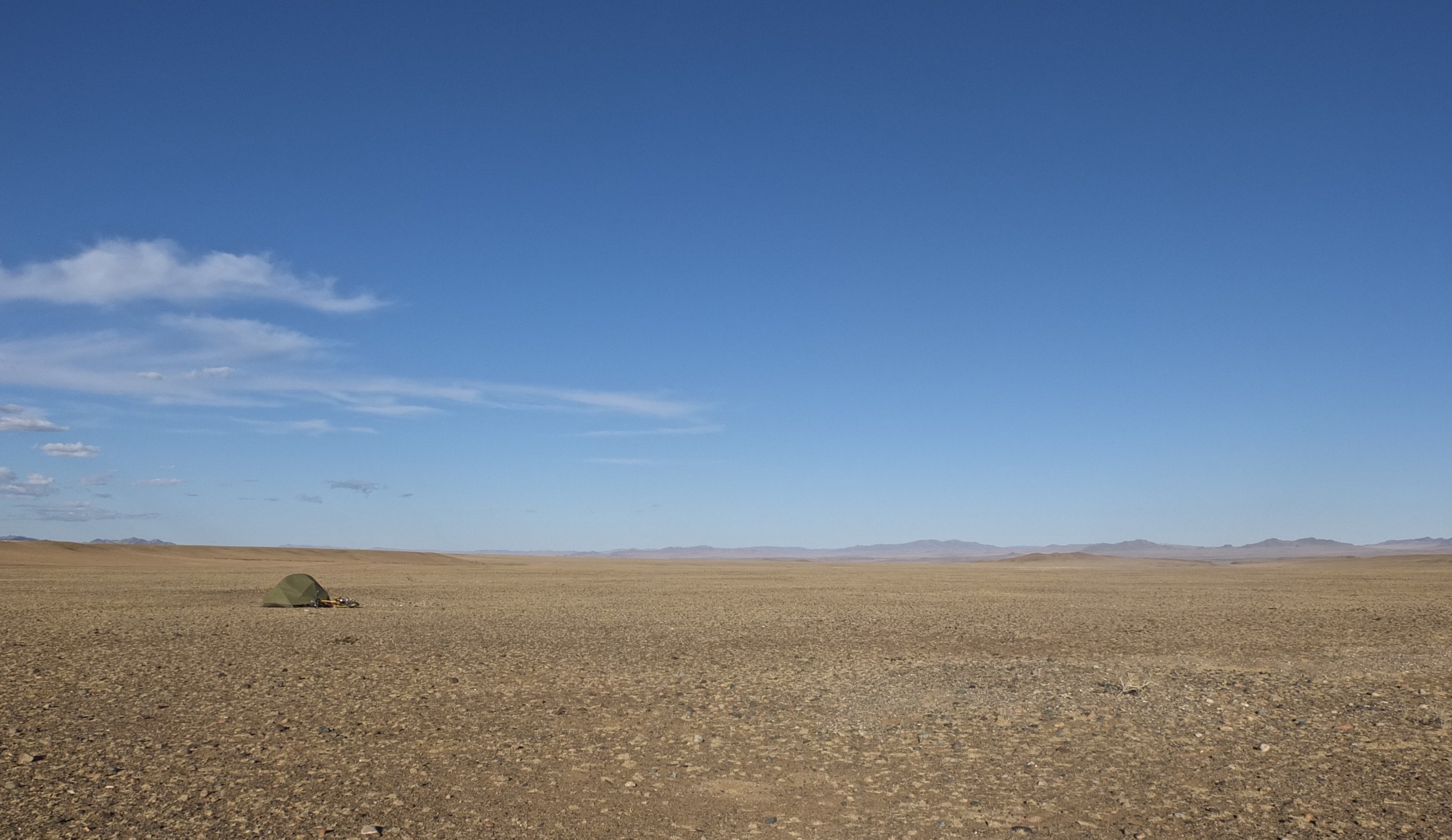 In Songino, I loaded 12L of water onto my bike that would get my through the next 3 days. On the second day, I came across a ger/restaurant in the middle nowhere where I was able to get a little extra water. I had grown used to seeing gers fairly often and it was strange to be on such a remote stretch where I only saw a few over 3 days. The road 145km from Songino was in a terrible state – the usual Mongolian trio of rock, sand and washboard. Still, I enjoyed the emptiness and solitude of the desert.