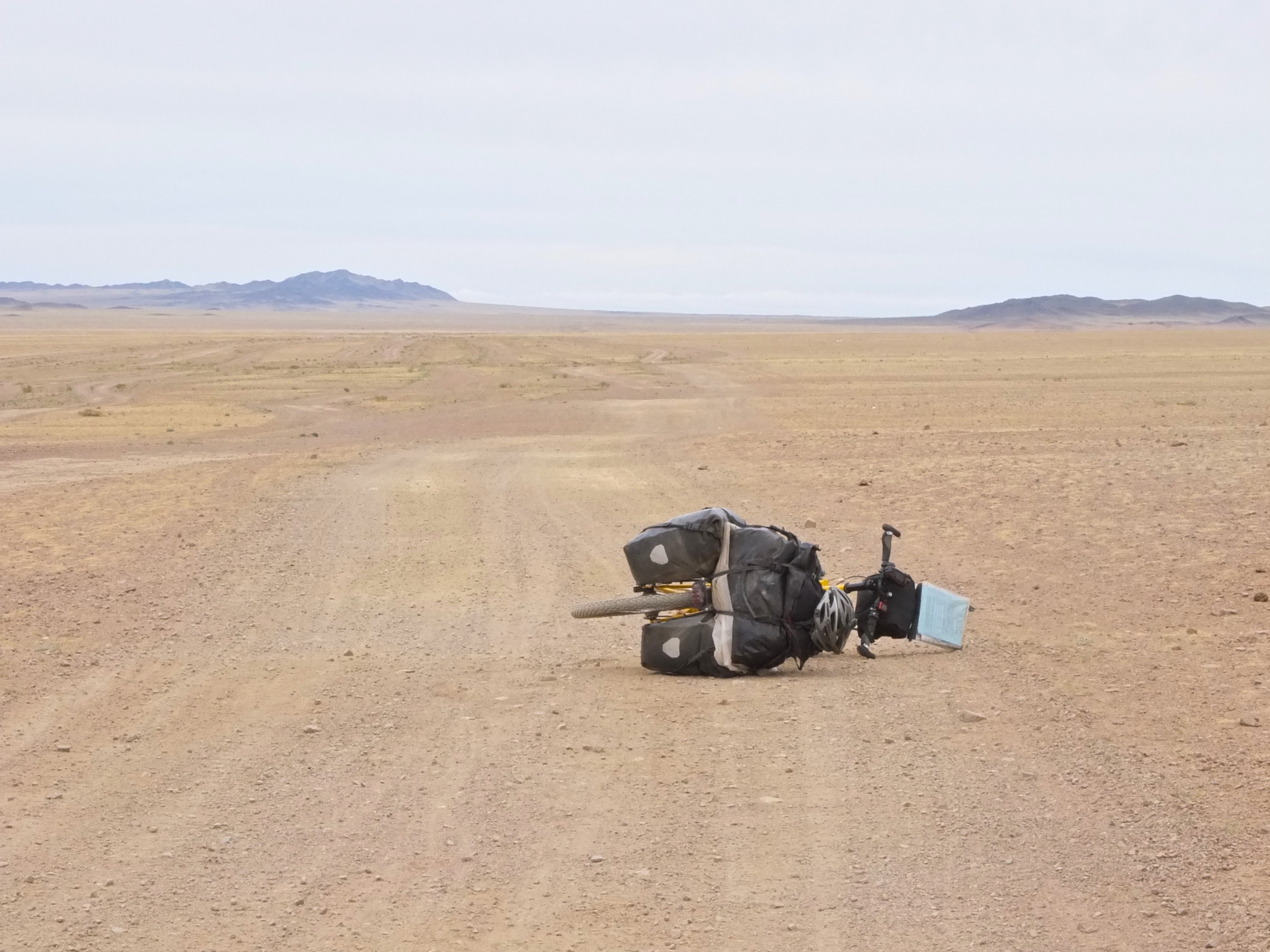 The endless tracks toward Khyargas Nuur wound their way through a stark desert landscape. The sand clung to my skin in a semi-permanent layer as it had on my bike and panniers. Occasionally the wind would send clouds of it hurtling in my direction and I would have to crouch down in cover.