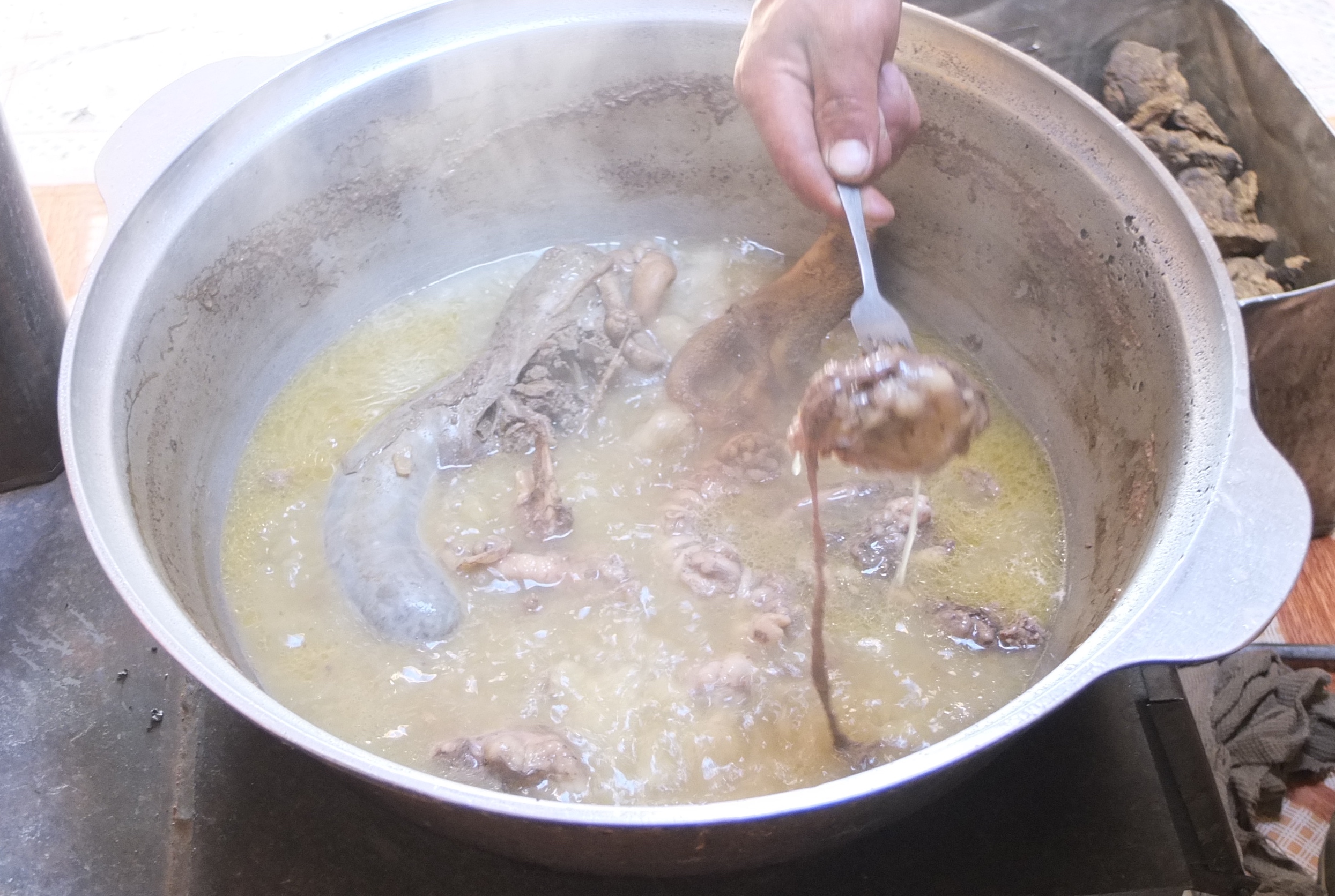 I was given süütei tea, which I have grown to really love. I also tried some of the most delicious fresh yogurt. I went through my usual communication routine of flipping through my Lonely Planet phrasebook and in turn passing it over for my hosts to find questions to ask me. Later in that ger, I faced one of the biggest mental challenges of the trip so far. My kind host prepared a meal for me and boiled sheep innards was on the menu.