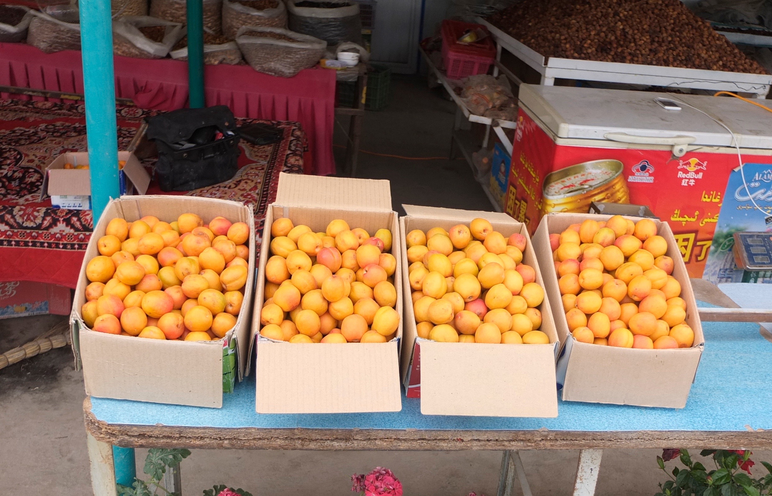 Down the road, the hospitality was never ending. One morning I stopped by some fruit sellers to buy apricots. When I said that I wanted five, they motioned for me to sit down and then handed me the whole box to munch on. As I said thank you and stood up to leave, they dumped another full box into some bags for me to take. It was ridiculously heavy to cycle, but I crammed them into my panniers anyway – eating apricots all day.