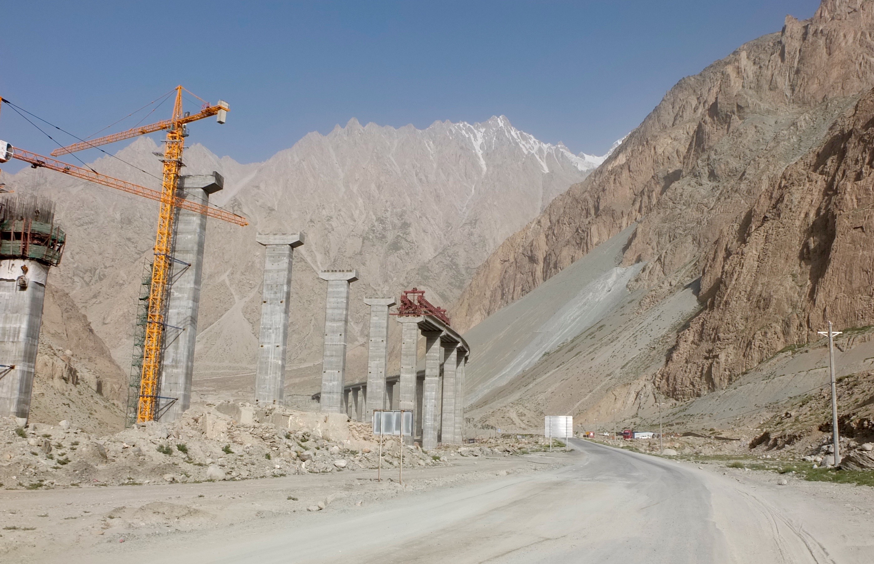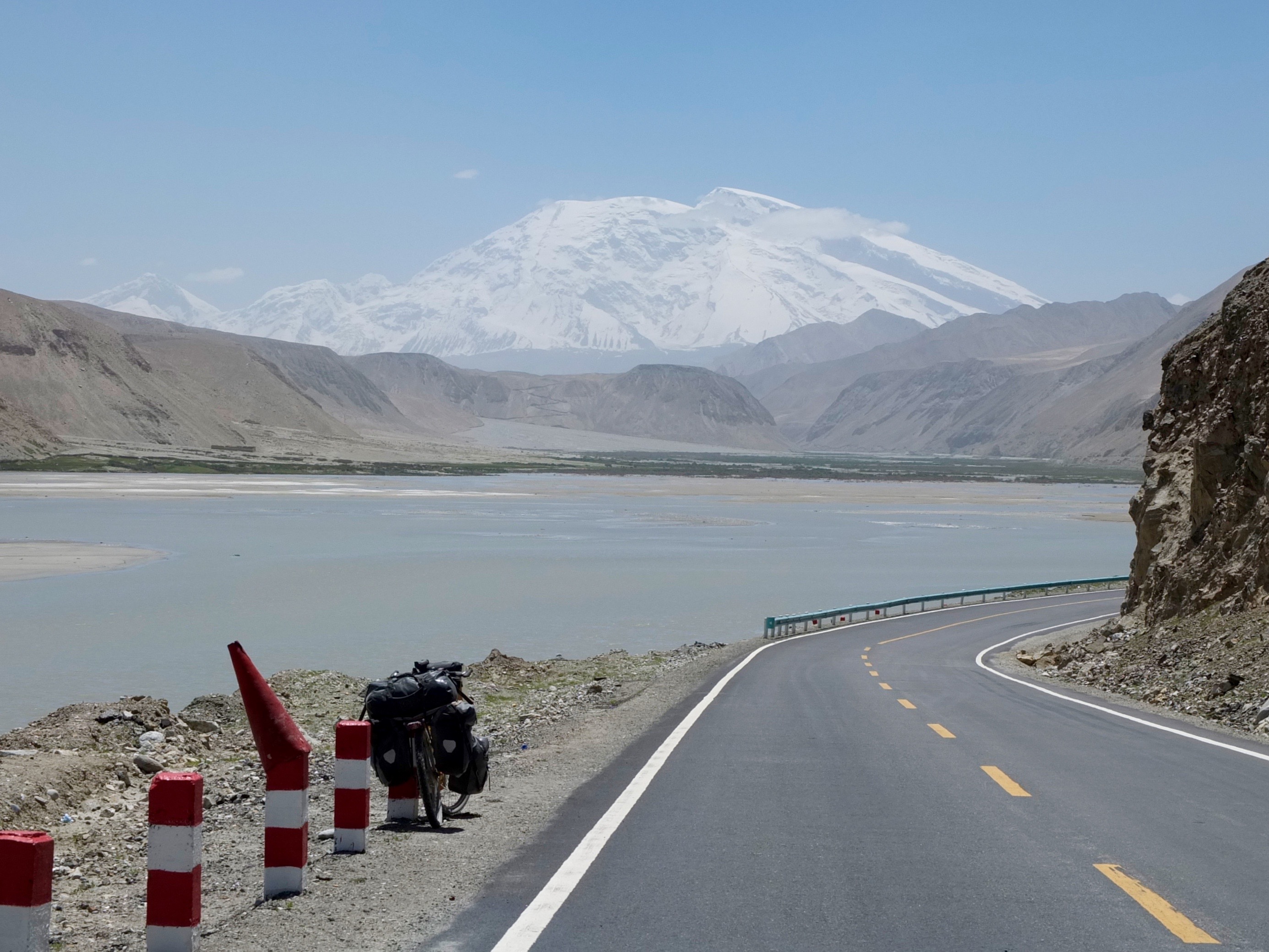 I had a lot of climbing out of Kashgar to get to the mountains again. The first day was extremely hot and after 80km I hit road construction. The road was quite broken in parts and I was eating dust from passing trucks. It looked like a freeway was being built beside the old highway, with some significant bridge construction.