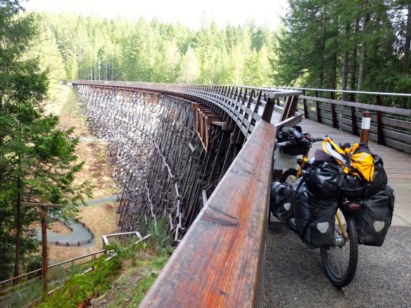The trip started off with a rough commute in heavy rain to Tsawwassen Ferry terminal from Vancouver. I spent the next 4 days visiting friends in Victoria and Shawinigan Lake before starting my loop of southern Vancouver Island. My ride from Shawinigan Lake began along the Trans Canada Trail – an old railway line converted to a a dirt and gravel path. It loops its way along Duncan, Lake Cowichan and Shawnigan Lake. After a few kilometers I had reached the Kinsol Trestle – a very impressive railway bridge that is one of the largest in the world and the highest timber trestle remaining in the Commonwealth.