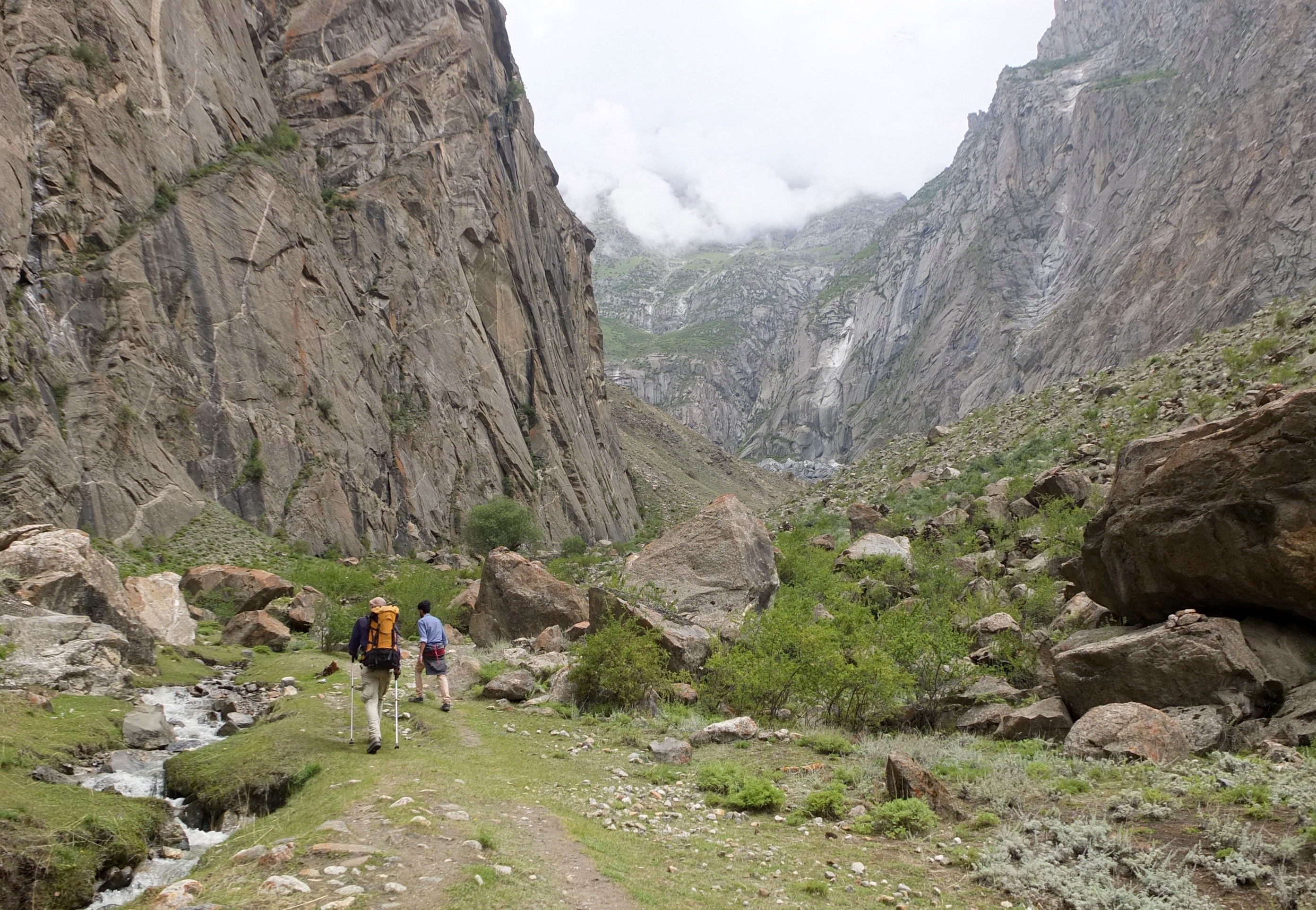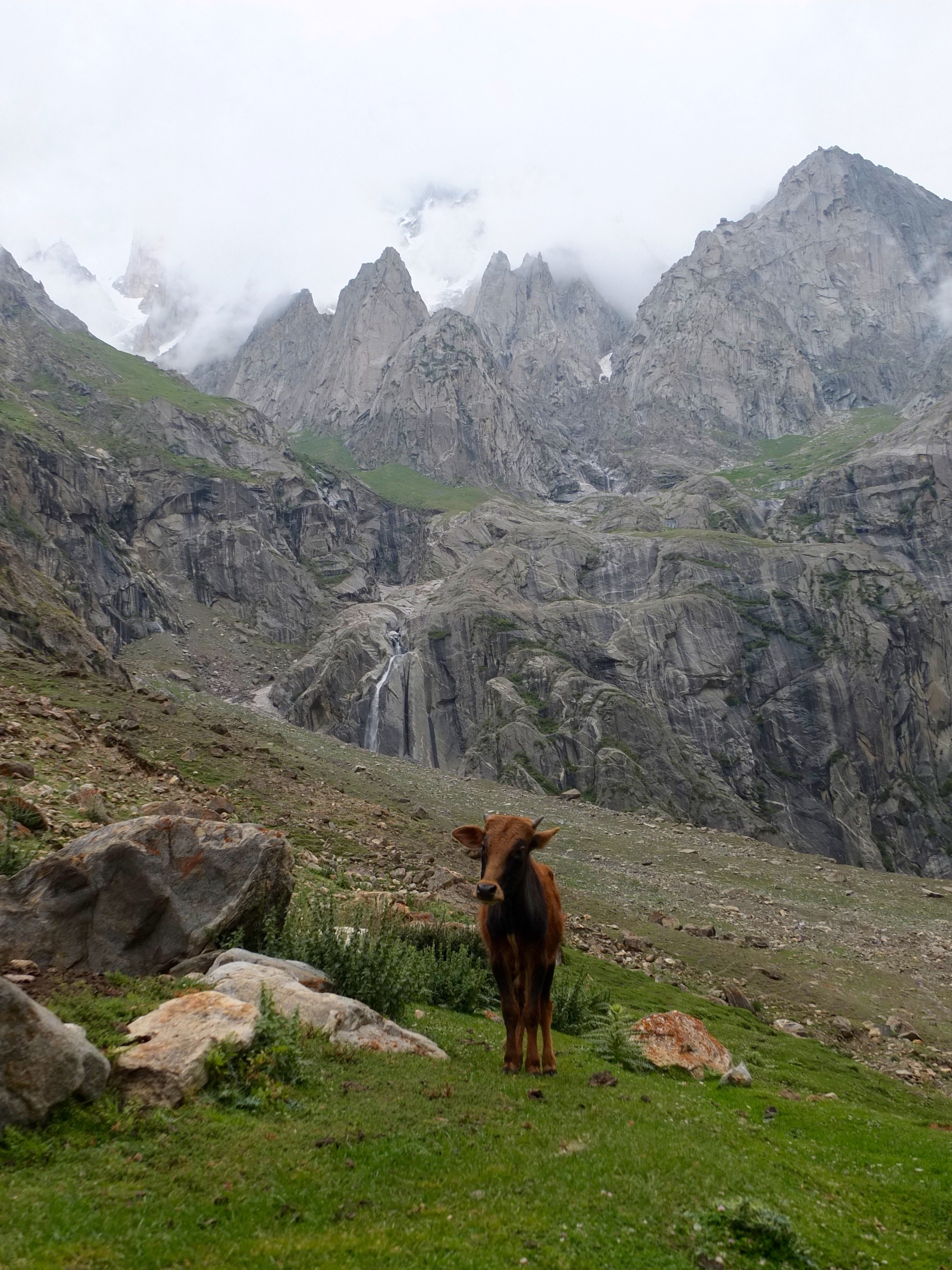 The bad apples from the previously day were wrecking havoc on stomach and it was a very challenging climb to the top for me. We stopped several times to drink from the icy clear streams and soak our heads. The ascent was continuous, swerving through bits of pine forest and rock cradled by the steep hillsides. As we neared the crest of the climb, our local guides suggested that we follow them up to a particular viewpoint. I scrambled up some loose rocks and what I saw next was nothing short of jaw-dropping.