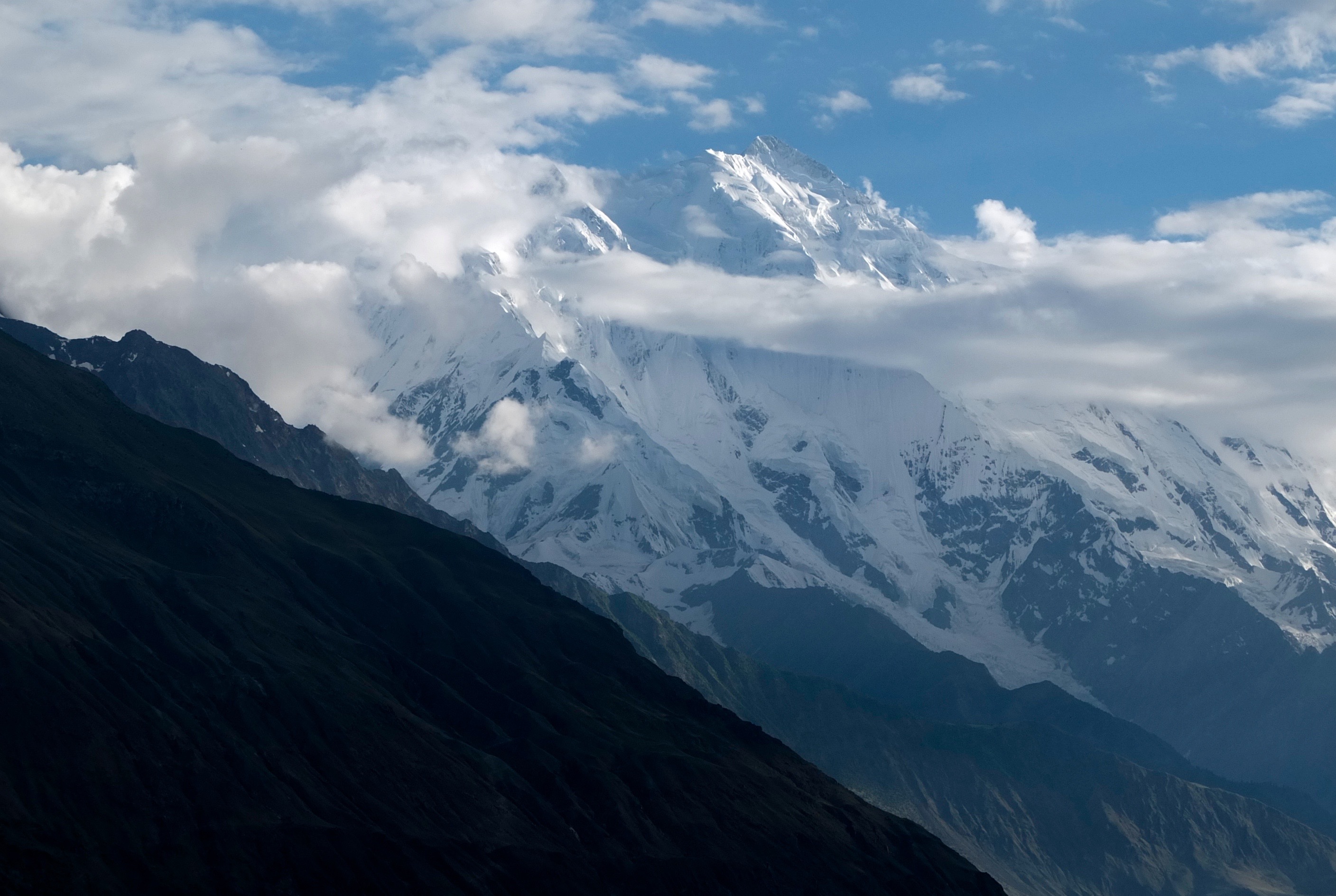 Semen, our local guide and me left Rakaposhi Base Camp around 9am and headed for Diran Base Camp. It was beautiful morning, with Rakoposhi in full view, filling the sky. We scrambled over small fields of boulders before making contact with the glacial ice. Once on the glacier, it was exhausting work scrambling up and down its steep curvatures.